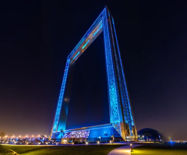 Visit the iconic Dubai Frame, offering panoramic views of old and new Dubai from a sky bridge, immersive galleries, and a glass-floored walkway—an unforgettable attraction showcasing the city’s past, present, and future.